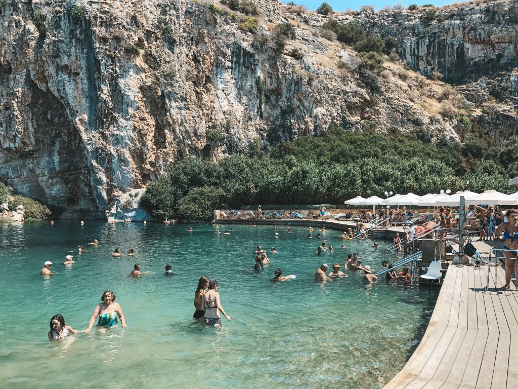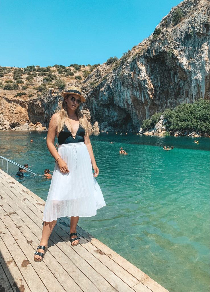 Tego dnia postawiłyśmy na totalny relaks, wybrałyśmy się nad jezioro Vouliagmeni, do którego dojedziecie autobusem z Aten. Próbowałyśmy też znaleźć słynną plażę, niestety trafiłyśmy na nią dopiero za trzecim podejściem i uznałyśmy, że nie warto płacić 5€ za wstęp, żeby posiedzieć na niej pół godziny.