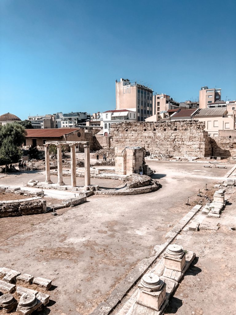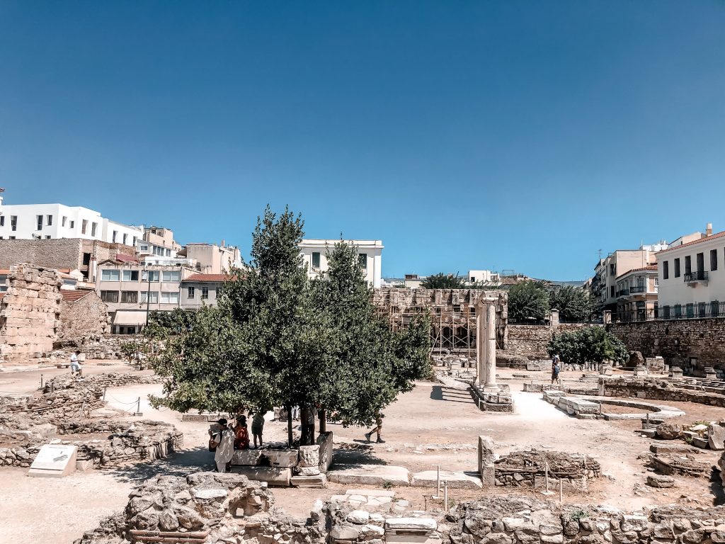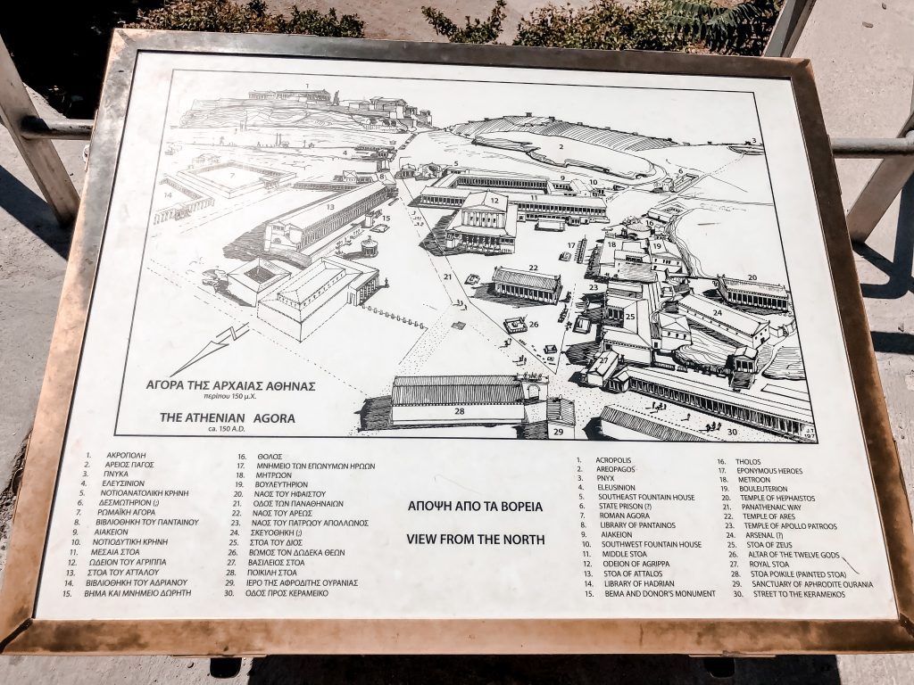 Agora w starożytnej Grecji stanowiła centralny plac Aten. Dziś jest to park, w którym znajdują się tylko trzy budynki: kościół świętych Apostołów, świątynia Hefajstosa i Ateny oraz odbudowana w XX w. antyczna stoa.
