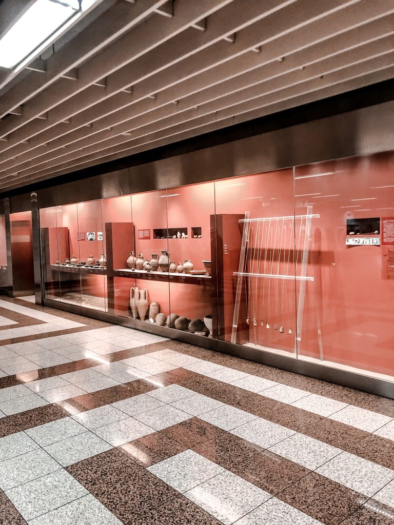 Na niektórych stacjach metra znajdziecie takie małe wystawy archeologiczne.