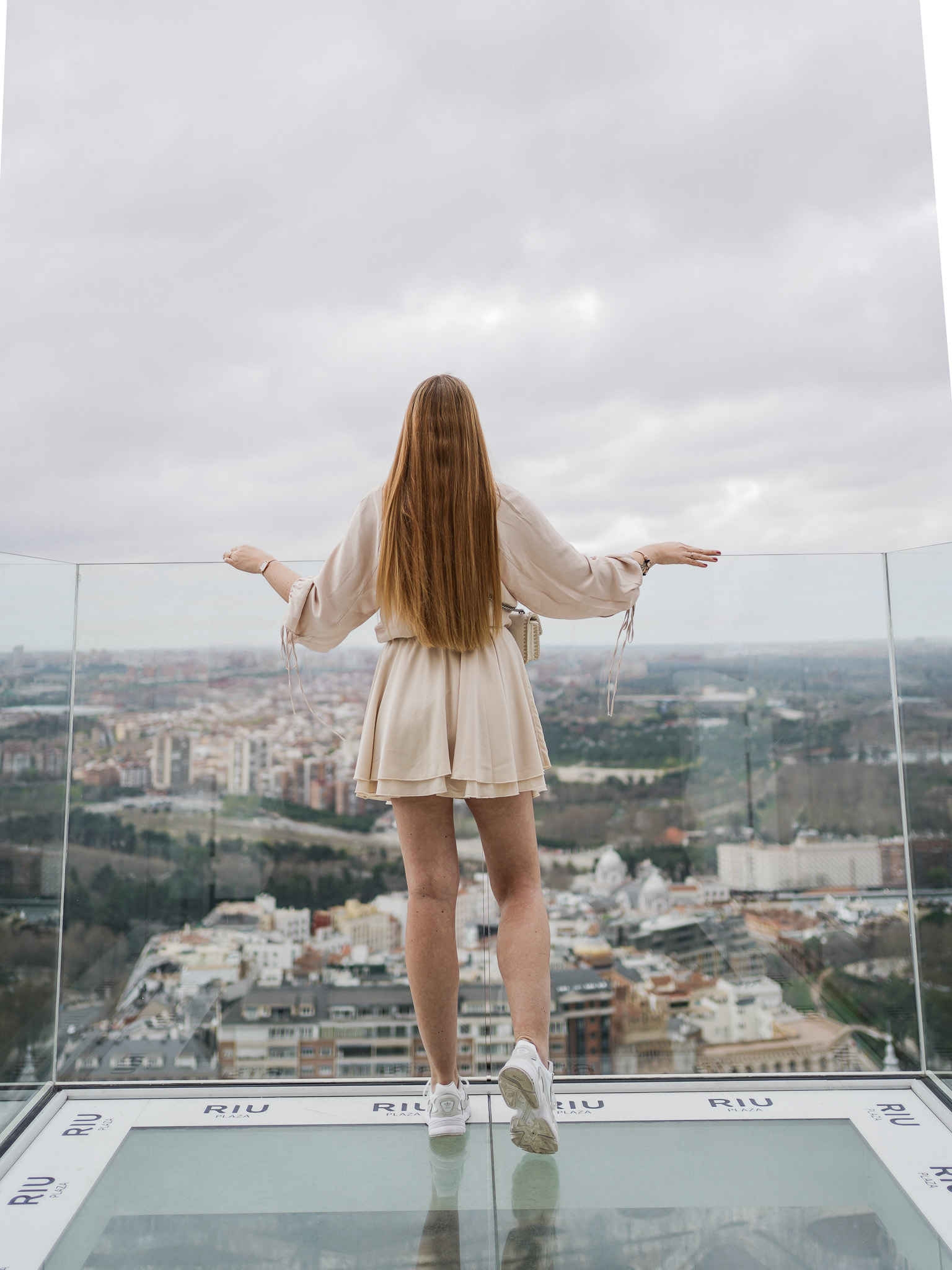 Z Hola Rooms podjechałyśmy linią metra nr 3 z Lavapies -> Plaza de Espana i tam stanęłyśmy jako jedne z pierwszych w kolejce, czekając na otwarcie chyba najlepszego punktu widokowego w Madrycie.