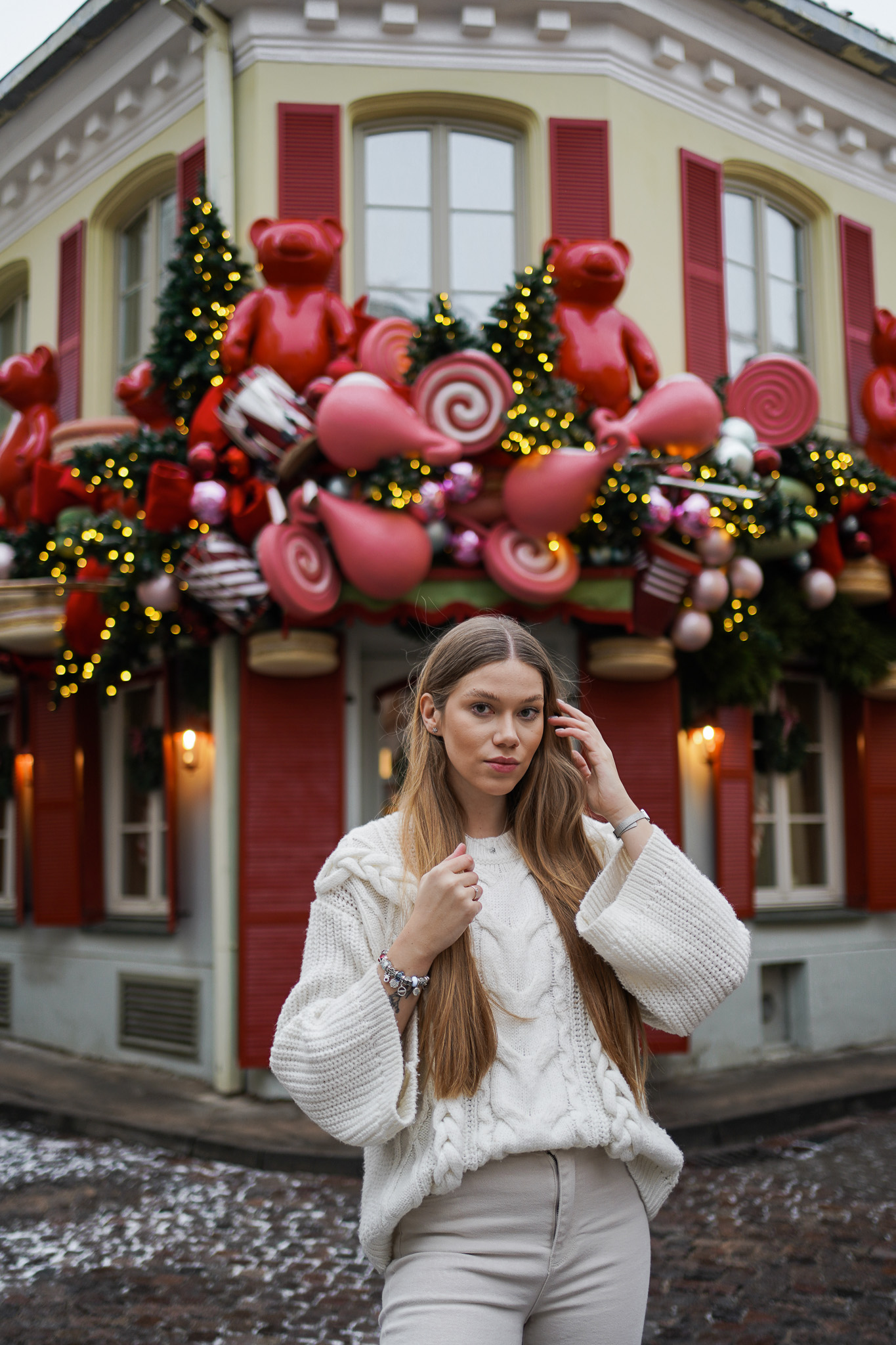 Przejdźmy teraz do naszego zwiedzania i reszty jedzonka. Po szybkim rozpakowaniu się w hotelu ruszyłyśmy na Stare Miasto! Nie jest ono duże i w zasadzie już pierwszego dnia zobaczyłyśmy większość z zaplanowanych punktów. Wilno jest naprawdę przepięknie ozdobione w tym okresie, restauracje stawiają na spektakularne witryny i wejścia, a ogródki restauracyjne nadal funkcjonują, między stołami są rozstawione ogrzewacze, także na spokojnie można chwilkę tam posiedzieć.
