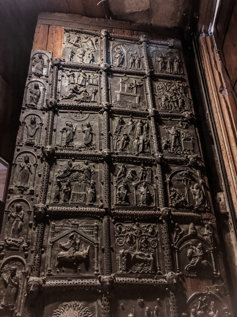 Kościół benedyktyński ze słynnym portalem zachodnim zbudowanym około 1138 roku. Po bokach portalu umieszczone są dwa bogato rzeźbione zespoły marmurowych kwater. Po prawej stronie, sześć górnych kwater zawiera sceny z Księgi Rodzaju, dwie najniższe natomiast sceny związane z królem Teodorykiem. Po lewej stronie znajdują się sceny z Nowego Testamentu. Drzwi wejściowe są obłożone 48 płytami z brązu datowanymi na połowę XII wieku.