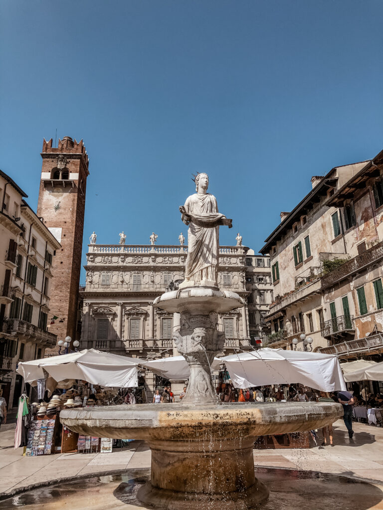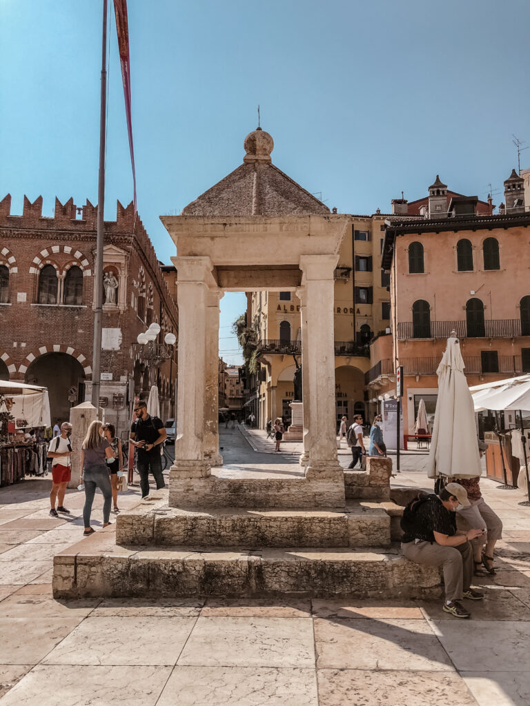 Najpiękniejszy plac w Weronie położony w miejscu dawnego forum romańskiego, otoczony pałacami, domami kupieckimi i kawiarniami. Codziennie otwiera się tu targowisko na którym można kupić owoce, warzywa, wyroby ze skóry i pamiątki.