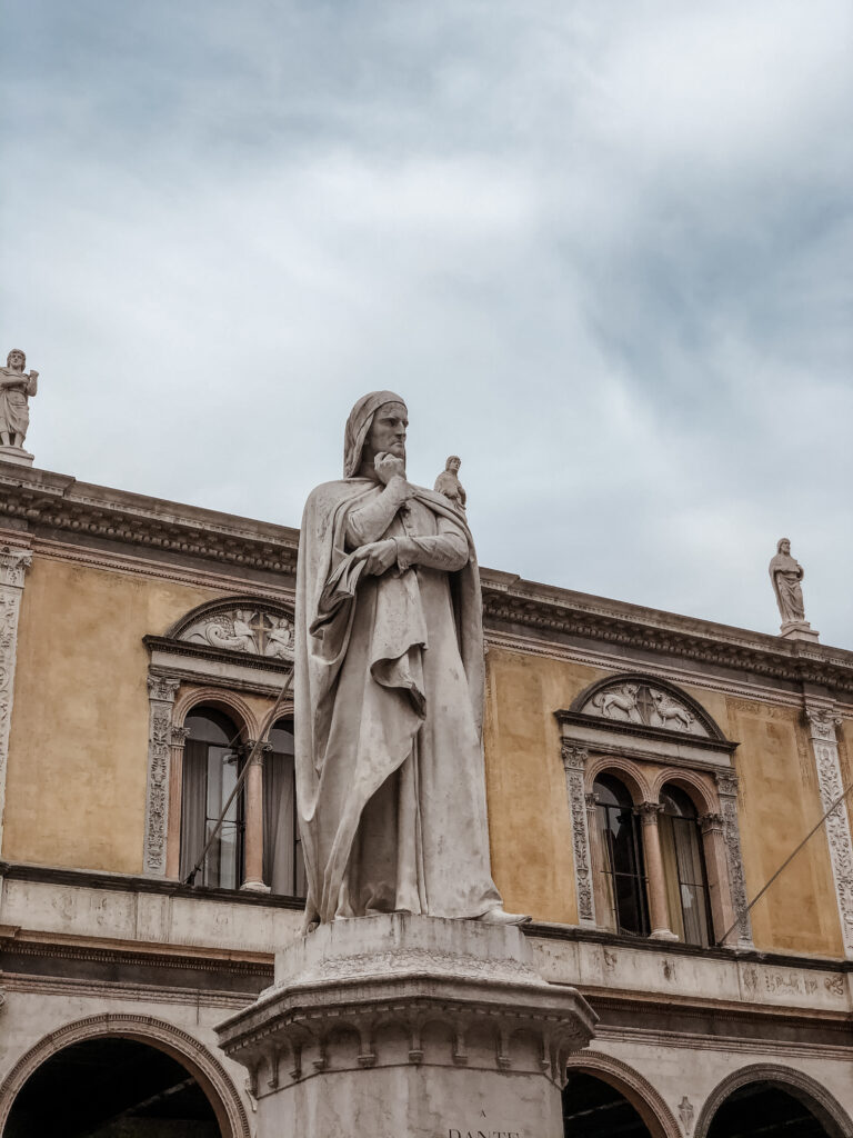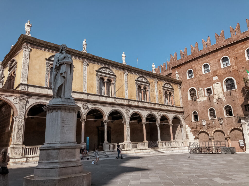 Otoczony interesującymi budynkami plac z pomnikiem Dantego Alighieri i kawiarniami.